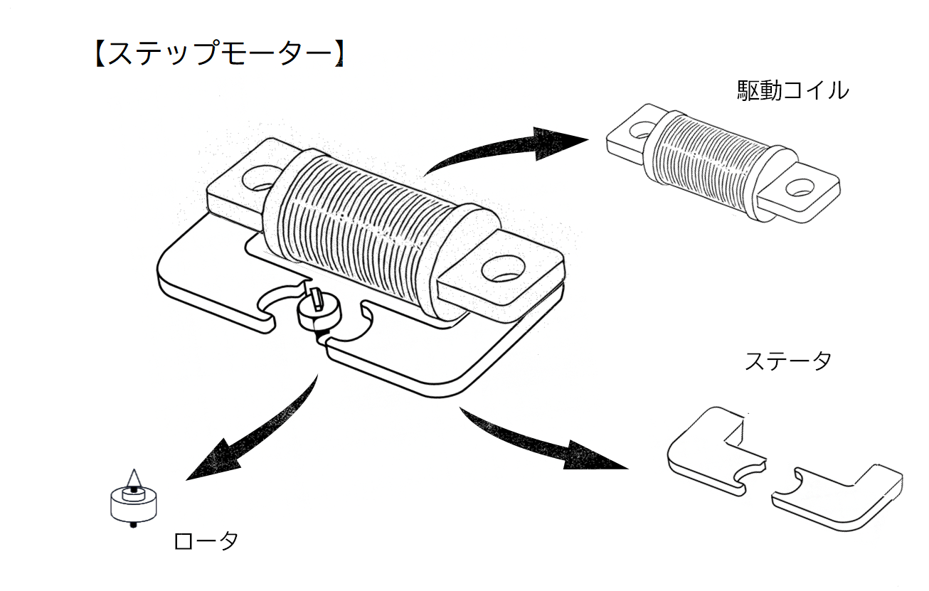 駆動回路から送られてくる駆動信号を針を回す為の回転運動に変える働きをします。