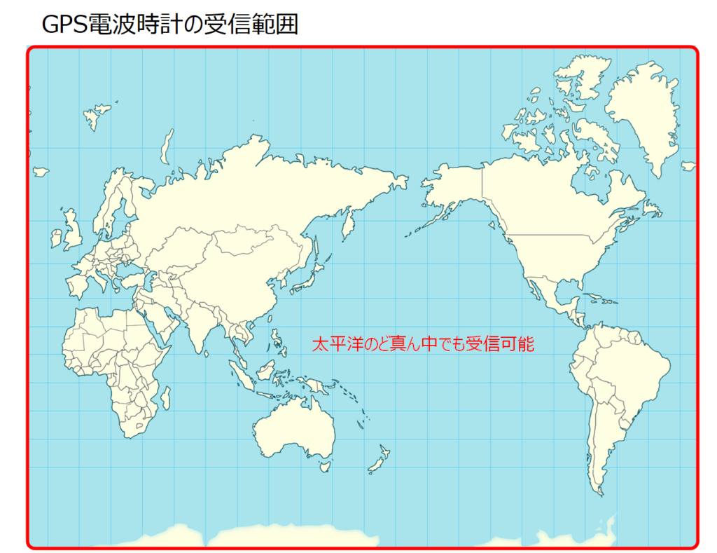 ソーラー電波は電波塔から500~1000キロ以内でしたが、GPS衛星は、地球上をぐるぐると回っているので場所を選びません。