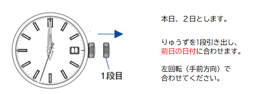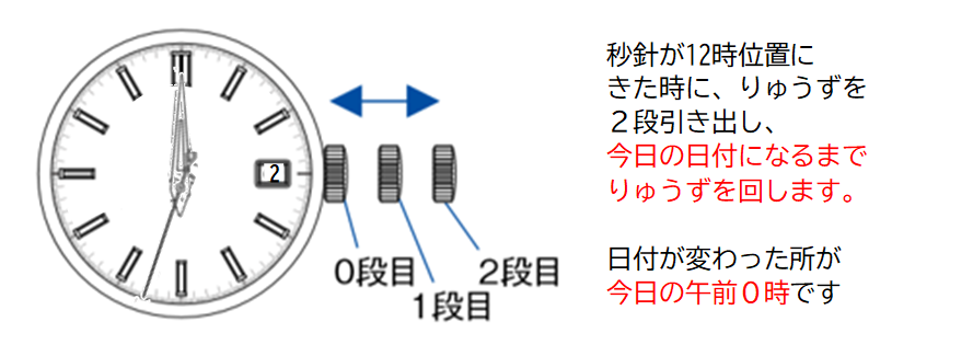 日付付きメカニカルの日付時刻の合わせ方
