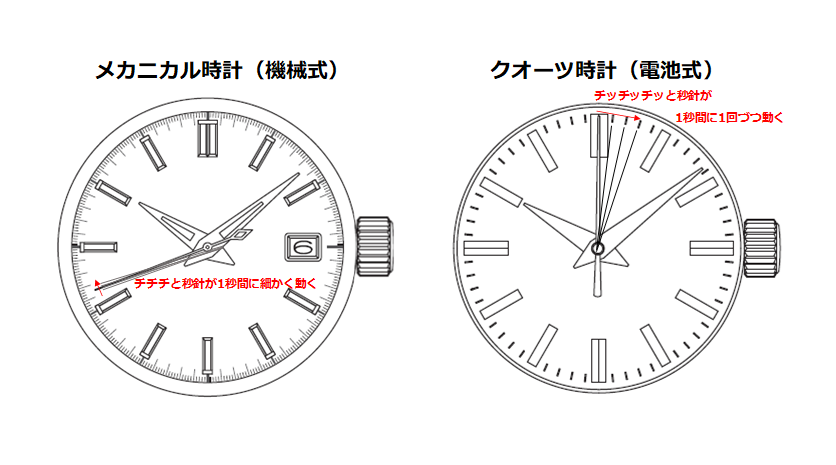 • メカニカル時計 秒針が細かく動く