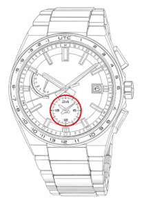 時針・分針・秒針を動かさず、24時間針だけを自由に動かしてサブの時刻を1時間単位で変えることができます。